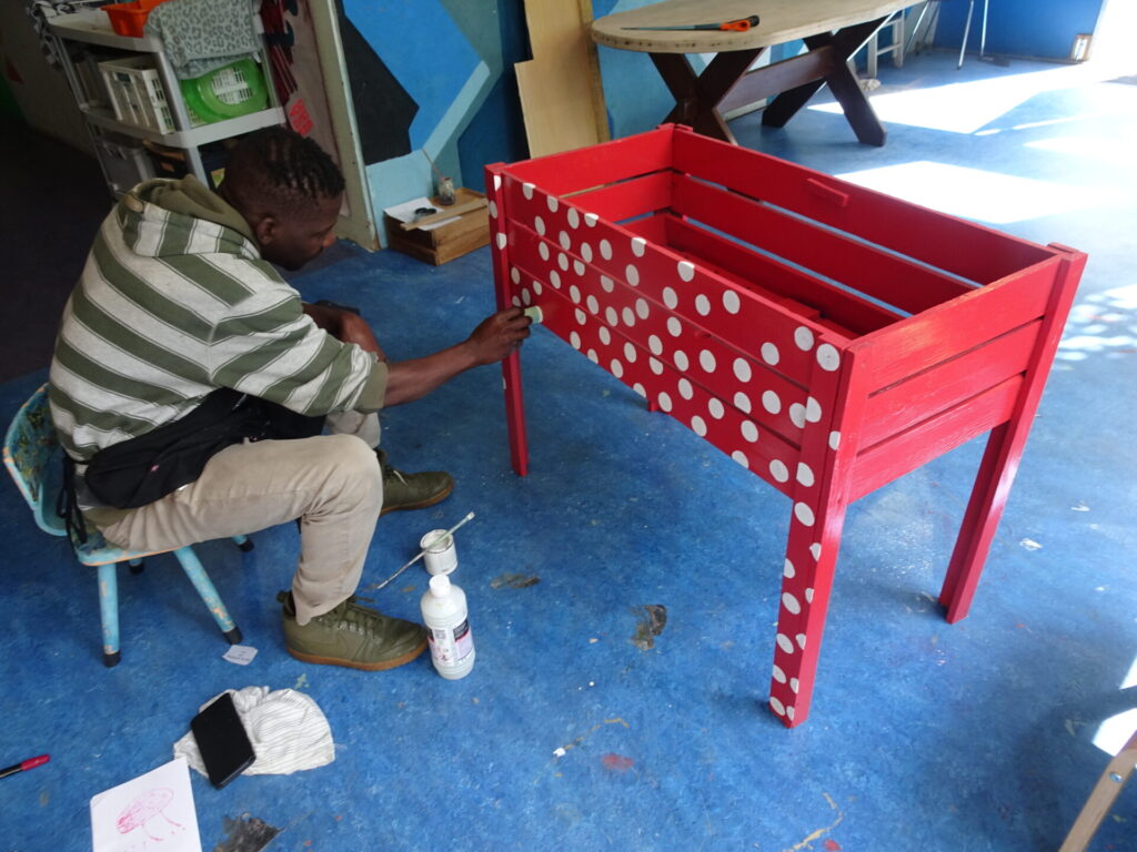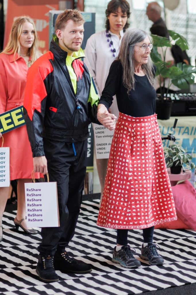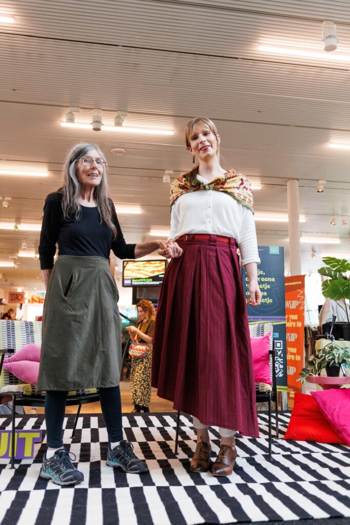 Hermi, een van onze bezoekers, in de hoofdrol op een modeshow onlangs met de rokken die ze bij ons maakte