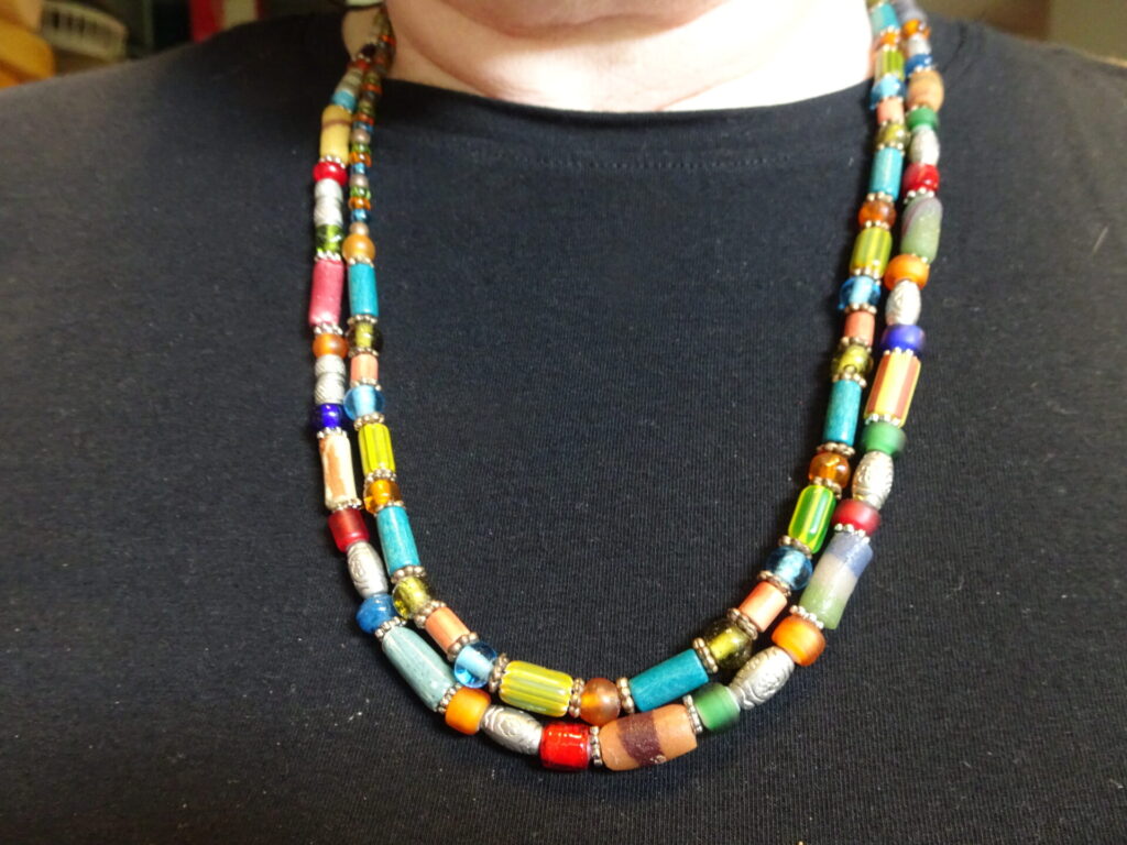 Petra zoekt de kralen die binnen komen uit en bergt ze op, en houdt de hele kralenboel netjes, een hele klus. Zelf maakt ze ook een en ander