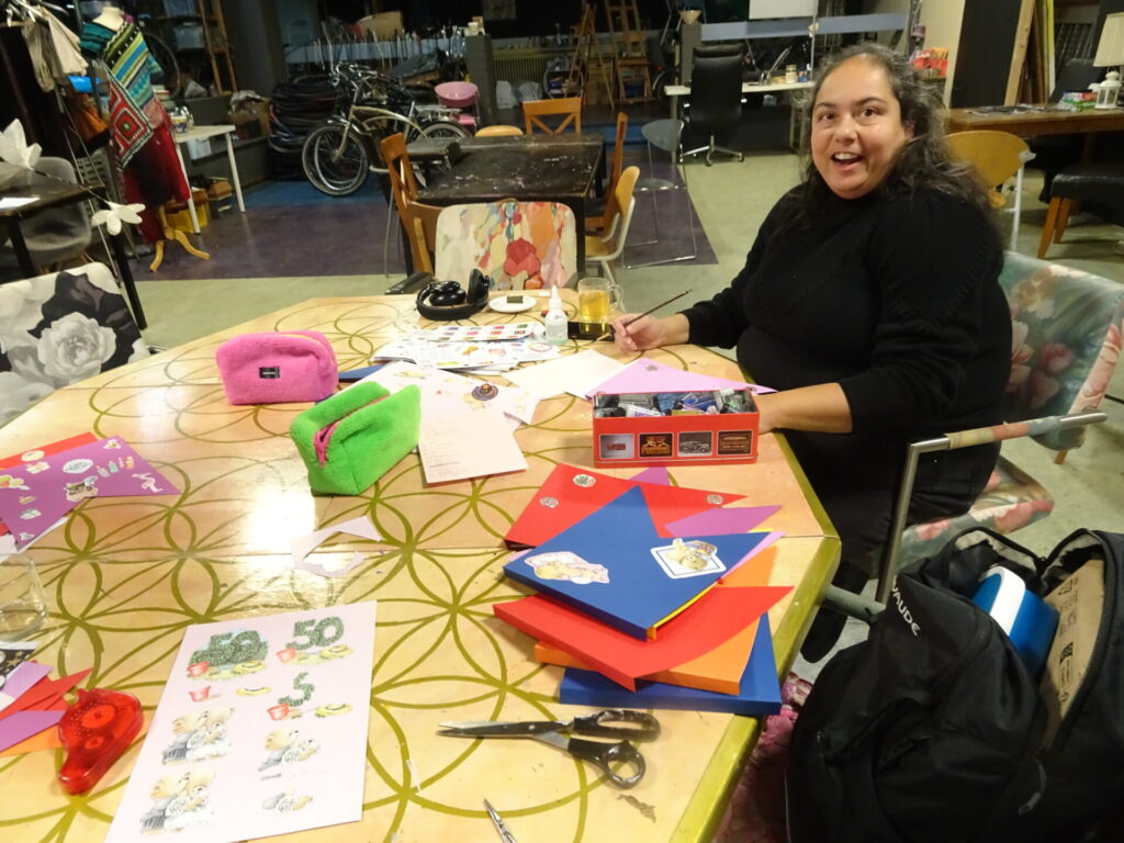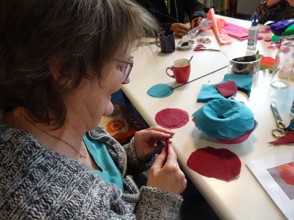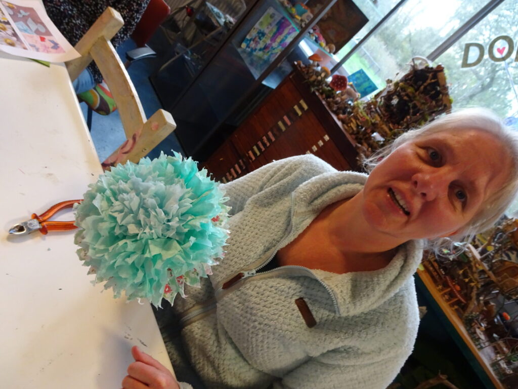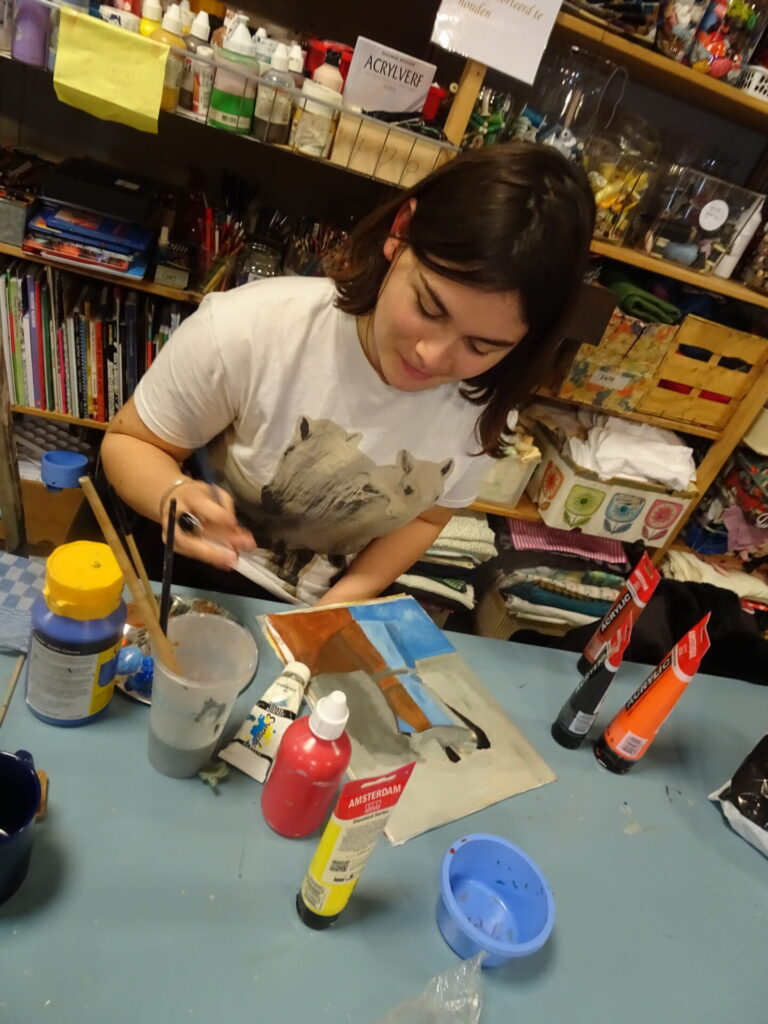 Shanti maakt een vlaggenlijn voor de klas van haar zoontje