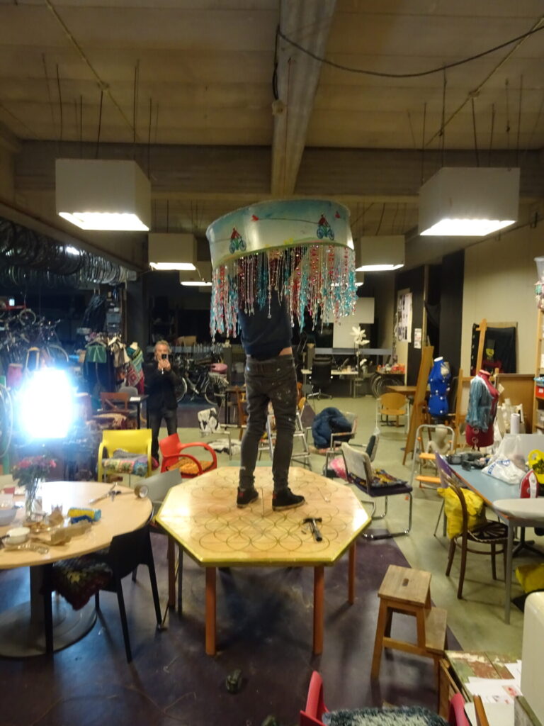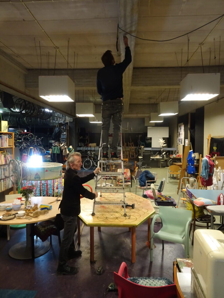 Onze fantastische nieuwe zelfgepimpte (Ilse) lamp ophangen