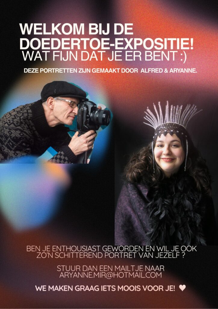 Aryanne Mir van Stenden Hogeschool in Leeuwarden liep van september ’24 tot en met februari ’25 stage bij ons in het kader van haar opleiding beeldend therapie. Zij sloot haar stage in februari af met een kado aan ons allen, het aanbod van een fotoshoot. Haar doel was ieder, bezoeker of vrijwilliger, afzonderlijk op z’n mooist af te beelden zodat we ons trots konden voelen op onszelf. Zij richtte een fotostudio in, vroeg een fotograaf haar te assisteren en ze richtte een grimeurhoekje in waar we met hulp werden opgetut en konden kiezen uit assecoires. Ja zij was de gedroomde stagaire.