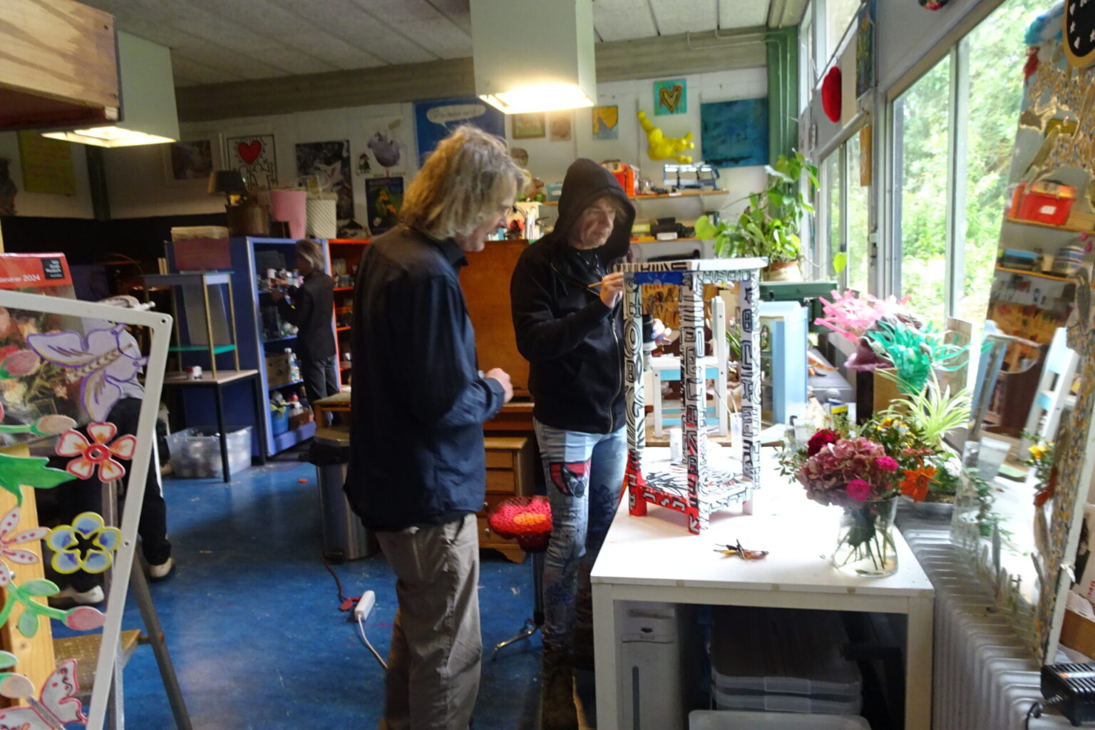 Een zee aan materialen staan ter beschikking voor meubels pimpen, textiele werkvormen, papierkunst, tekenen en schilderen, sieraden maken, mozaïeken, allerlei knutseltechnieken, enz. Ieder kan zowat elke creatieve uitingsvorm beleven, en er mee experimenteren.