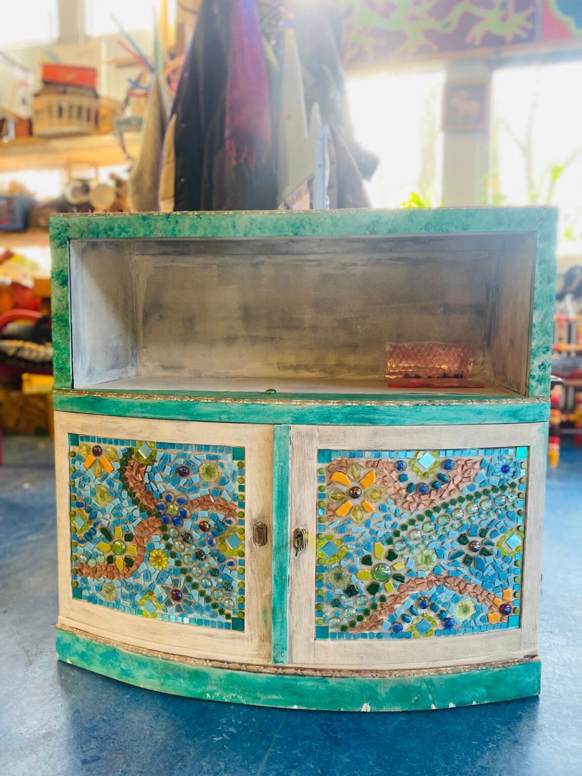 We zoeken gerecyclede, nog mooie eventueel kapotte meubels om te herstellen en opnieuw te beschilderen, versieren, beplakken. Vrijwilligers werken niet voor de markt maar vrij op hun eigen kunstige manier. Deze geupcyclede meubels worden als gift aangeboden, of voor een bedrag “pay as you feel”, of voor een tegenprestatie (barterdeal). Eenieder kan aan ons team eigen meubels in opdracht aanbieden. Of zelf met onze materialen een (eigen) meubel een nieuw design komen geven. Op 31 december ‘25 hebben we in totaal 307 meubelstukken gepimpt, deze staan gearchiveerd op onze website: www.doedertoe.nl/meubels-pimpen. Dit archief is te raadplegen voor wie een meubel zoekt. We hebben ook een ‘toonzaal’ ingericht in onze werkplaats. De meubels werden vooral weggegeven en anders voor een klein bedrag verkocht. De opbrengst helpt de maker vooruit.