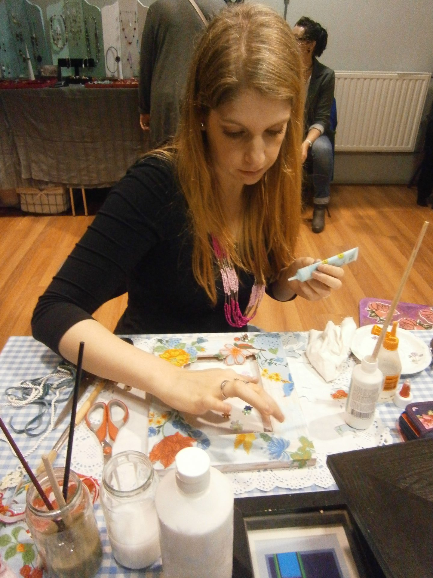 Fotolijstjes versieren in de dansschool van Tineke Rouw