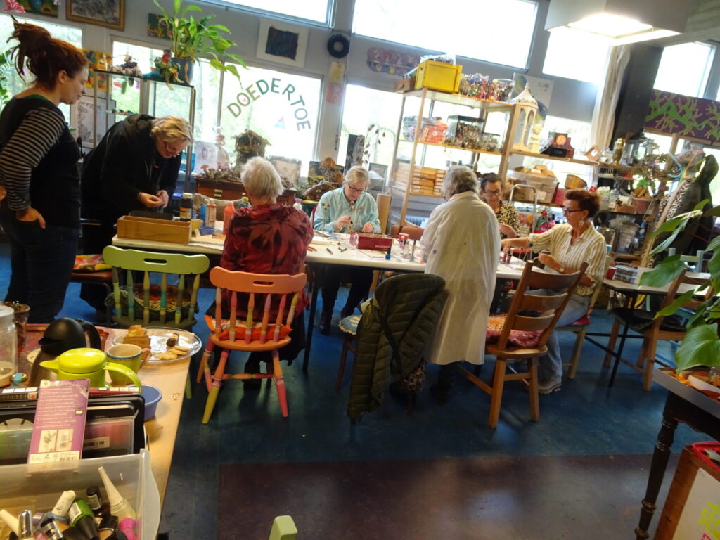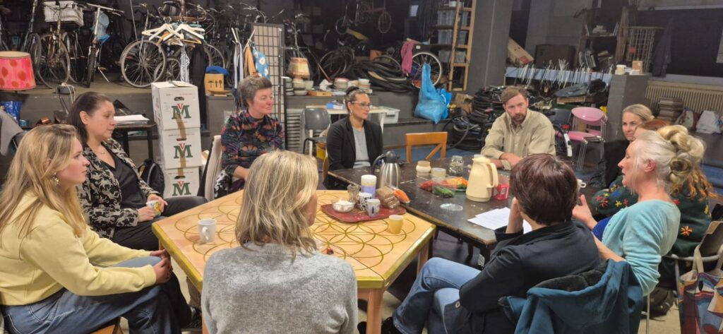 In onze werkplaats een overleg van de Participatiewerkplaats, een informele netwerkgroep van functionarissen die werken met vrijwilligers en participatiebanen. Ze kwamen bij Doedertoe om te weten wat er in west is waar cliënten heen kunnen gaan om door te verwijzen.