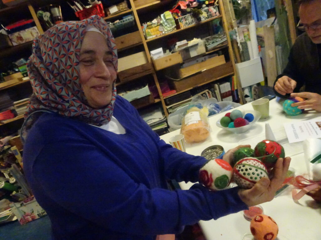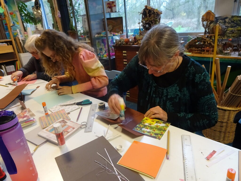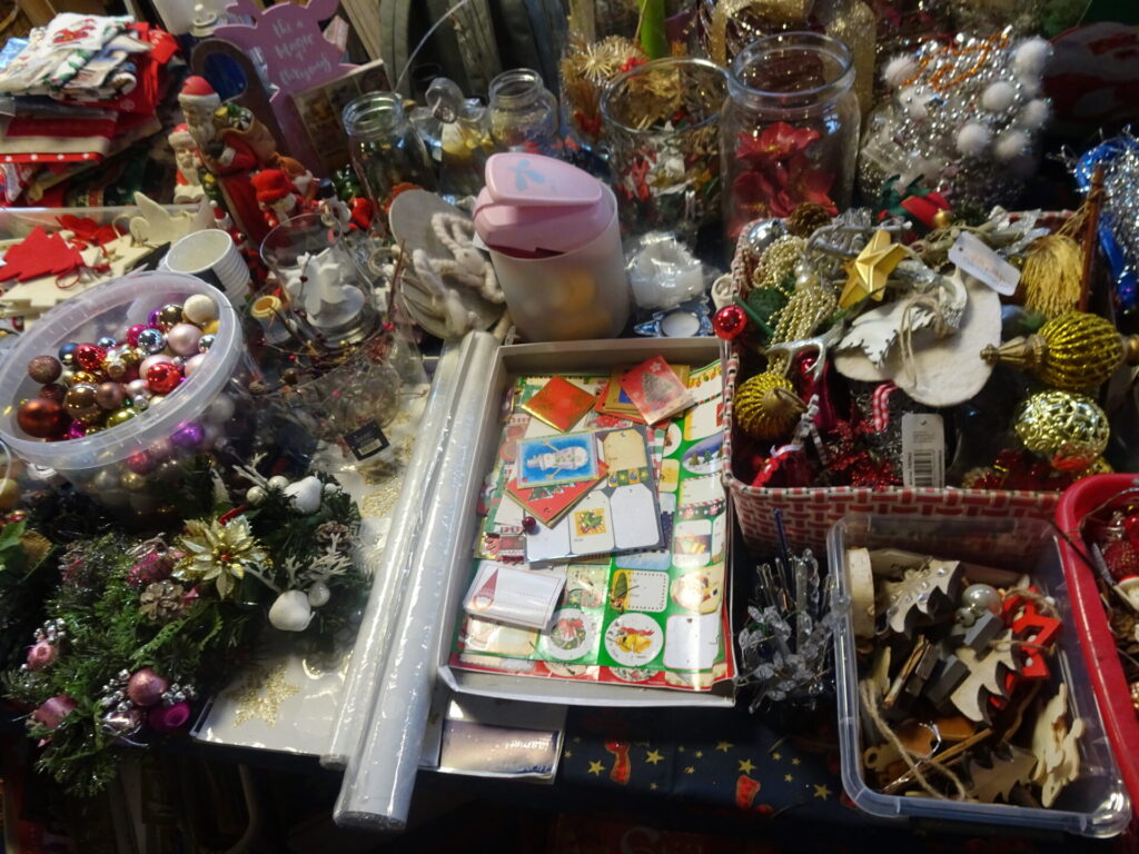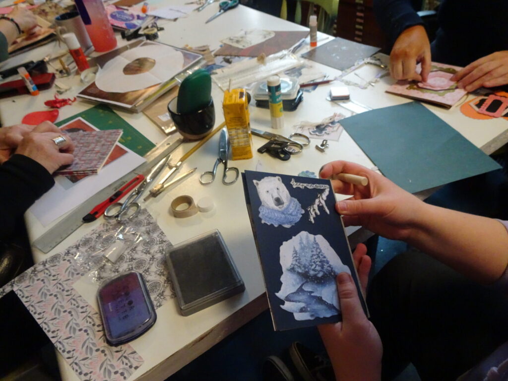 Welkom om bij ons kerststukjes te komen maken, of kerstkaarten, of kerstballen versieren enz….