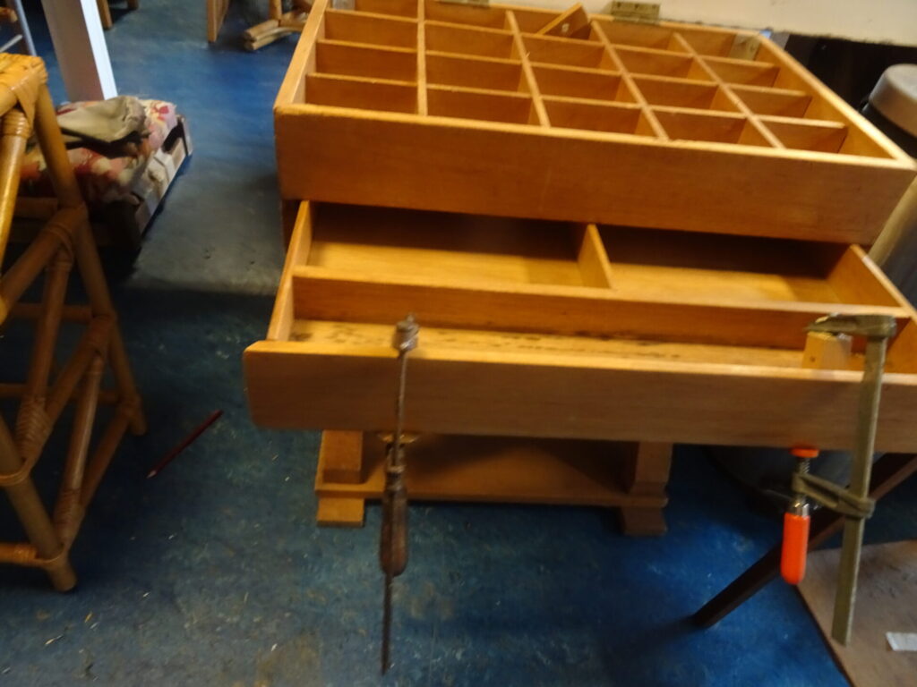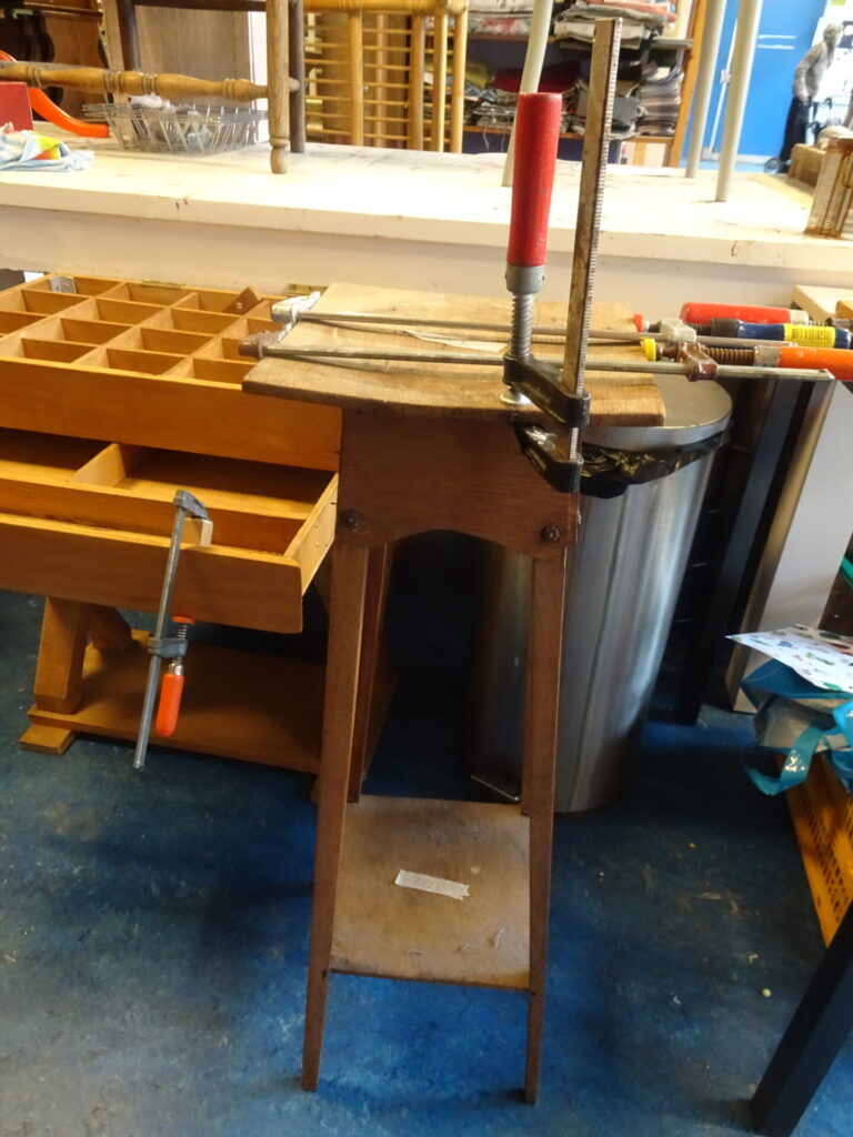Wij ontvangen gebruikte meubels, en vaak moeten we ze eerst repareren. Eltjo doet dat meestal
